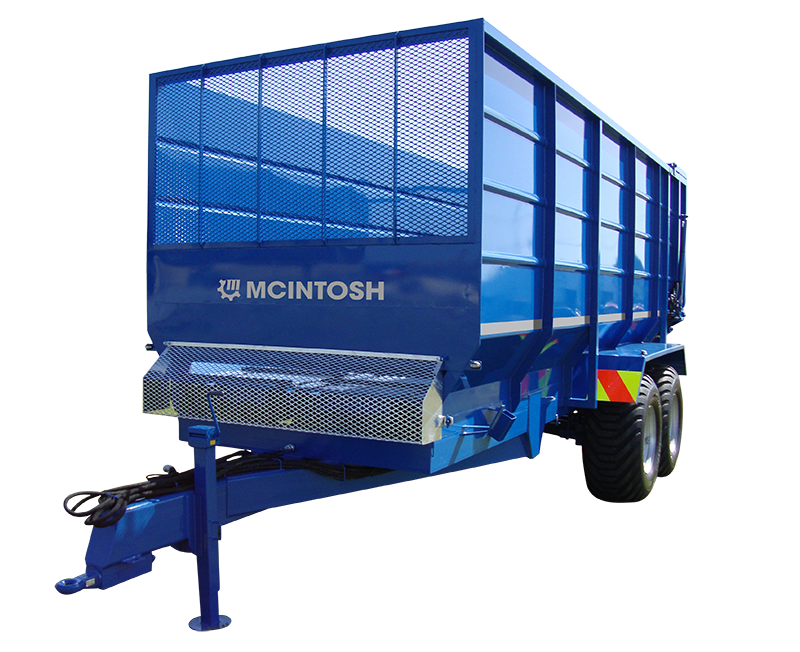 McIntosh Farm Machinery build a line of high-capacity chaser wagons with the same rugged and durable design and with features forage contractors are looking for. The McIntosh Chaser Wagon is used to carry cut silage and Maize to the silage pits. Our chaser wagons can drive over the stack when unloading and are more stable on hills than tip trailers.