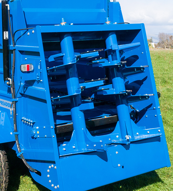 2 vertical augers with up to 16m spreading coverage | One-piece heavy duty German gearbox for augers |