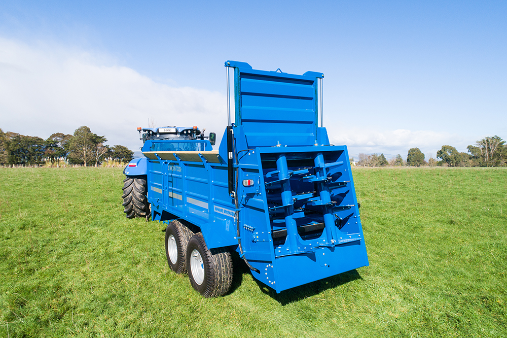 2 vertical augers with up to 16m spreading coverage | One-piece heavy duty German gearbox for augers |