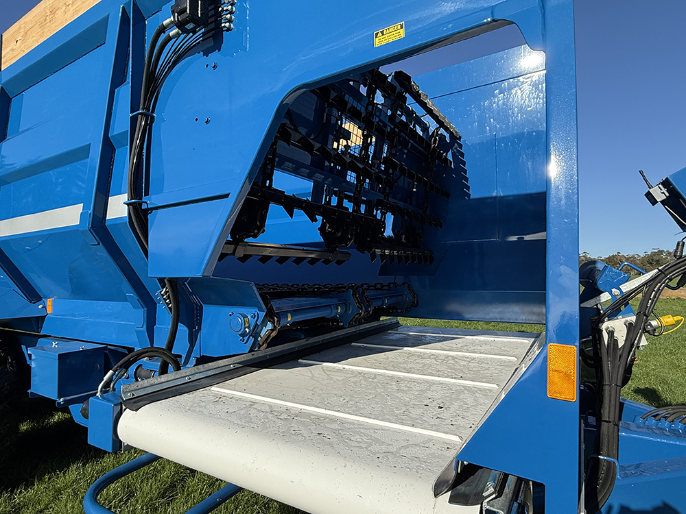 With 16mm floor and elevator chains (32-tonne breaking strain), a 5mm corten steel floor, and heavy-duty side construction, the Titan Max delivers unmatched durability. Smart design features like the greasepressurised rear chain adjusting system and remote greasing points make daily operation safer and easier—keeping you out from under the machine and out on the job.